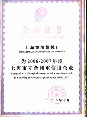 | 2016-2017守合同重信用企業 | 合同信用等級認證 | 2006-2007年度守合同證書 | 2013-2015年度上海市著名商标 |